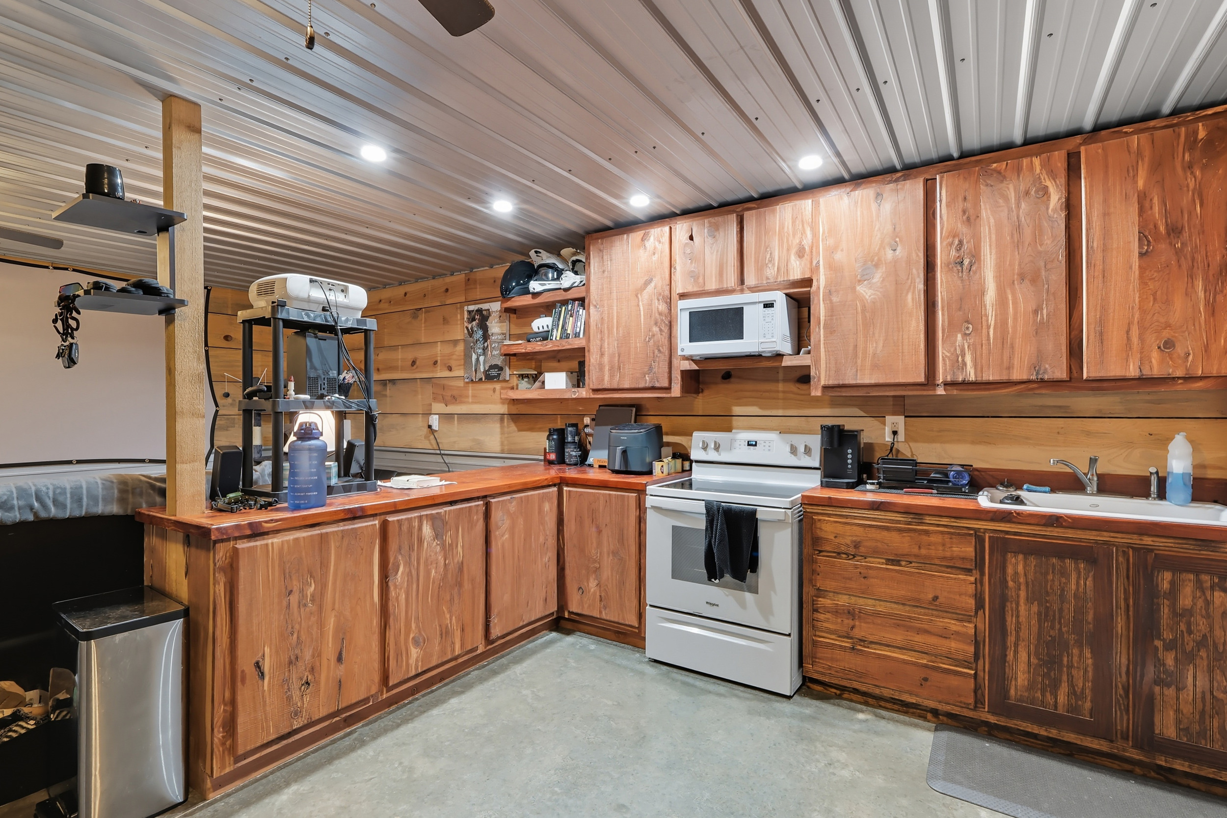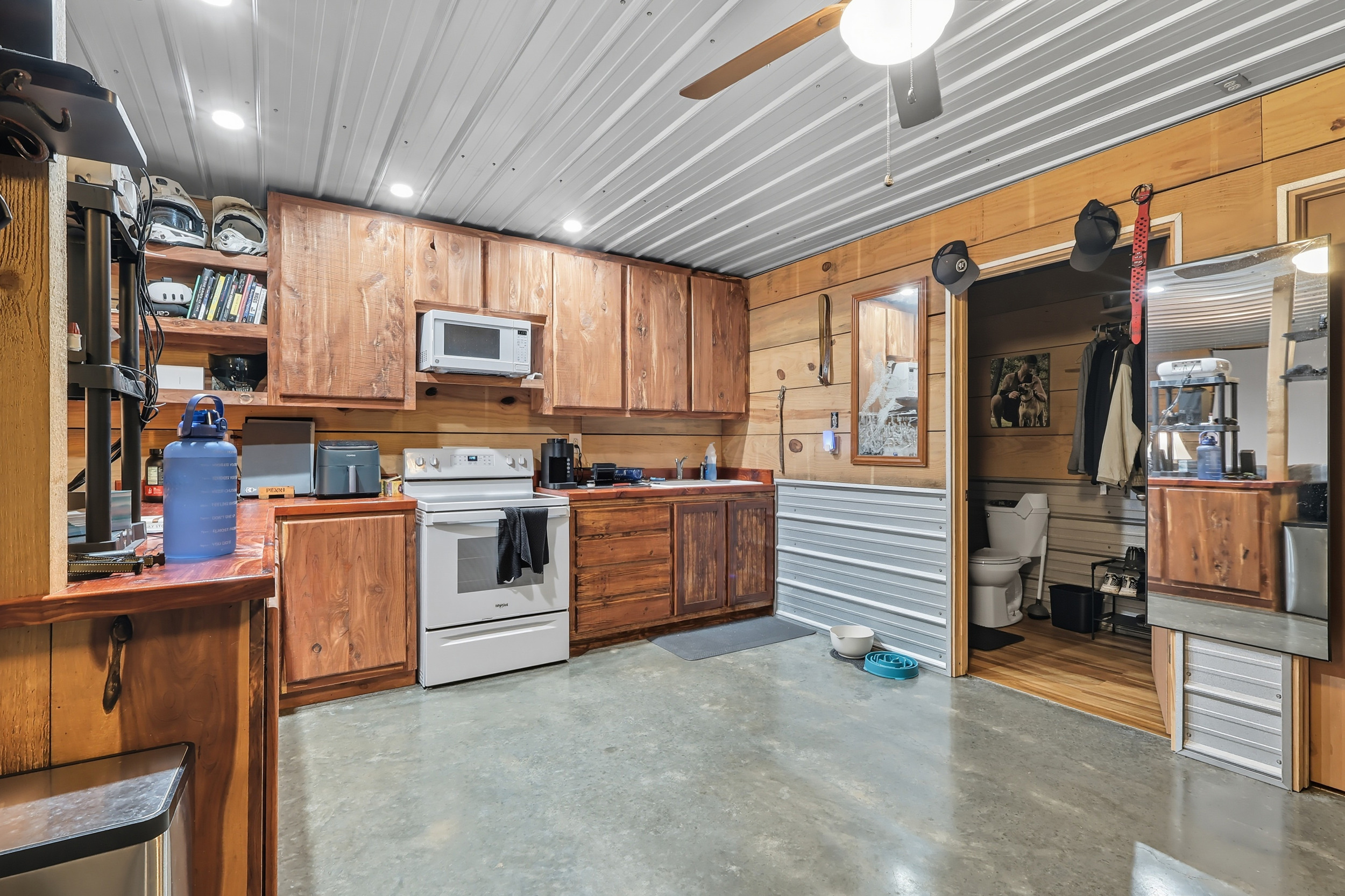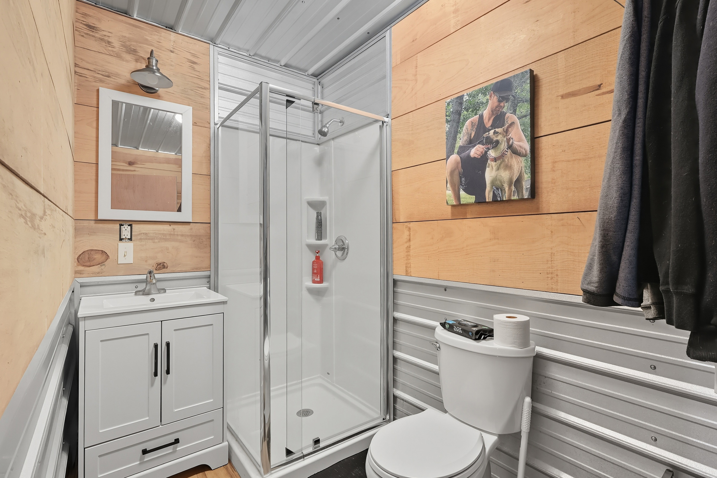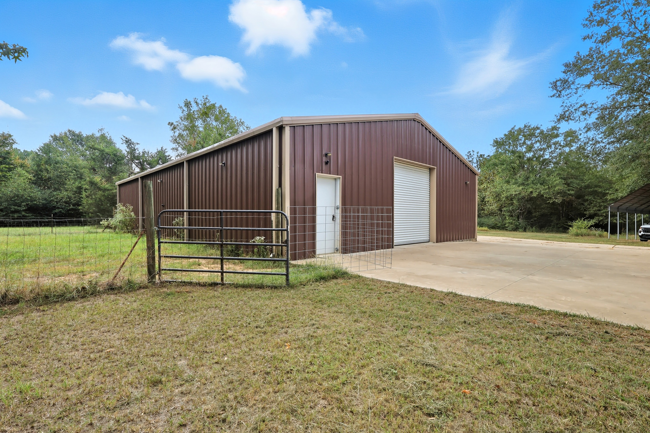 Custom Barndominium on 3 acres in Elysian Fields ISD! This 1-bedroom, 2-bath, 800 sq ft living space is nestled inside a 2,400 sq ft shop offering endless possibilities for expansion or use as a workshop. Inside you'll love the custom cedar kitchen cabinets, concrete floors, and ceiling fans. The home is equipped with two wall units to keep it cool and comfortable year-round. The shop features three overhead doors, allowing plenty of room for projects, storage, or even driving your RV inside. Outside, the property offer just over 3 acres with cleared trails, perfect for exploring, riding, or enjoying the outdoors. Located just minutes from I-20, you'll have easy access to Shreveport to the east and Longview to the west making this property convenient for commuters. Whether you're looking for a weekend retreat, a full-time home, or a property with room to expand, this property delivers space, privacy, and versatility.